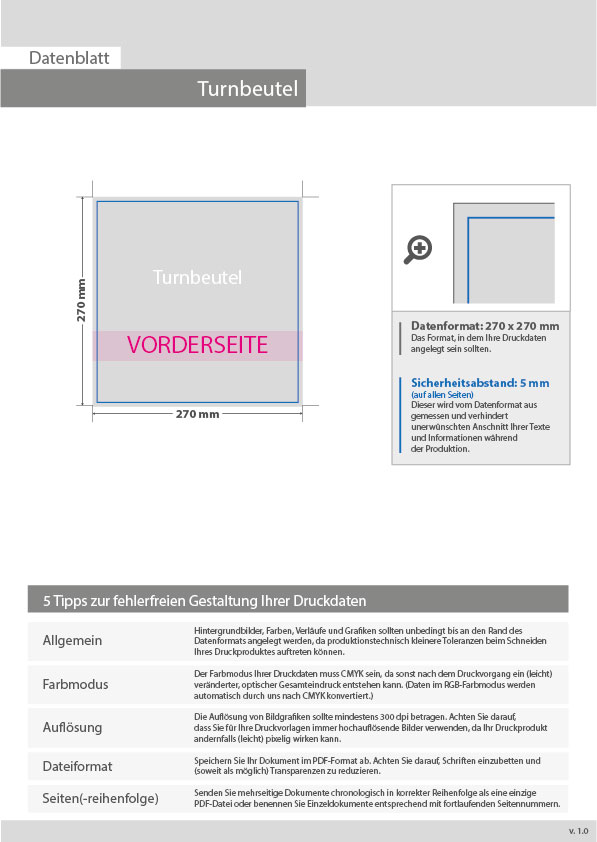 Turnbeutel, 4/0-farbig einseitig bedruckt
