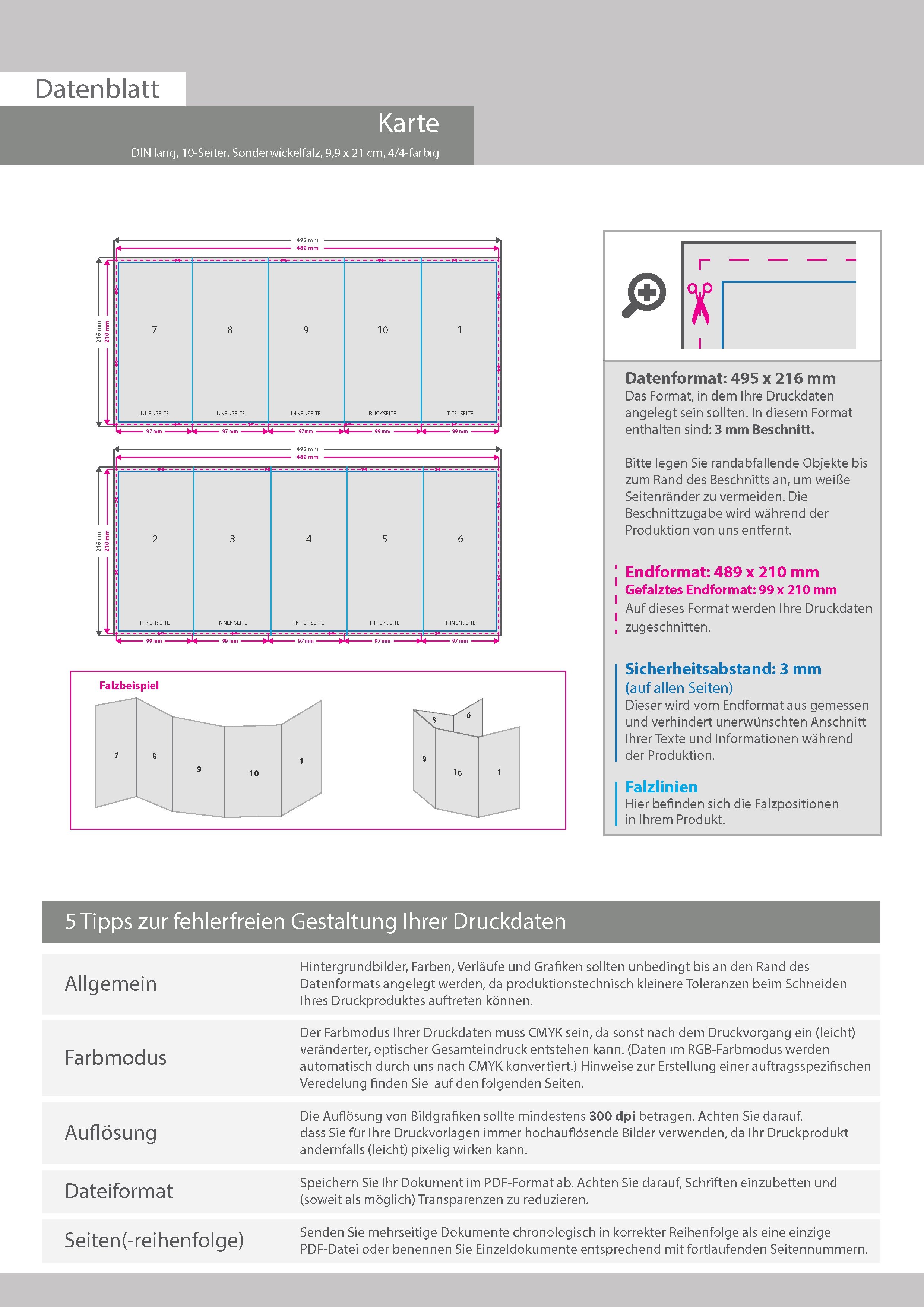 Einladungskarte, gefalzt auf DIN lang, vertikaler Sonderwickelfalz, 10-seitig